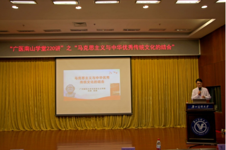 为拓宽学生的知识面,丰富和活跃校园生活,营造良好的学习氛围,由教务处、校团委主办,校科协承办的“广医南山学堂”系列教学讲座第220讲之“马克思主义与中华优秀传统文化的结合”于2022年10月13日19点在番禺校区图书馆一楼学术报告厅举行。本次讲座由我院刘涛教授担任主讲嘉宾。